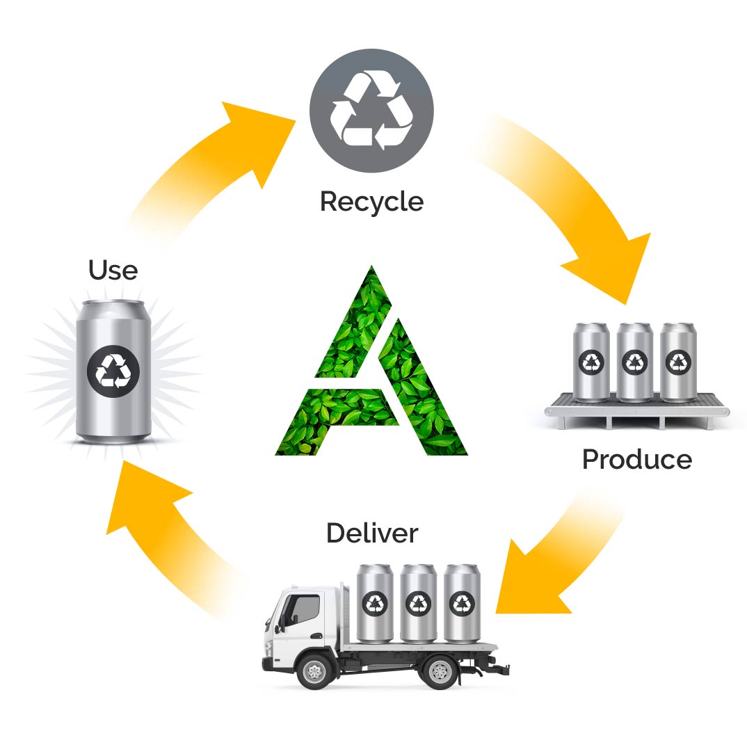 - Aluminate cans circularity lifecycle is dependent on recycling. Aluminate’s mission is to promote and educate to continually improve recycling rates.